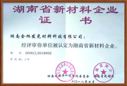 湖南金旭發(fā)光材料科技有限公司于 2016年成立,注冊資金1000萬元,是一家專業(yè)從事蓄能自發(fā)光反光材料的研發(fā)、生產(chǎn)與銷售的高新技術企業(yè),于2018年獲得省工信廳認定的省級新材料企業(yè)。